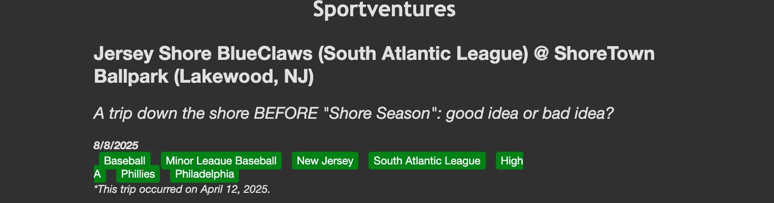 I have every intention of continuing to go to sporting events and writing about them, and at some point, that's going to make my blog rather unwieldly for my main "archive" page - in fact, it kinda already is (as Next keeps complaining about how many items are in my posts array). Being able to filter the archives by some factor helps users immensely if they're looking to see just my posts on a specific sport/league.