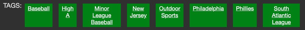 Originally, I felt that I wanted to do something kinda "fun" with the tags: make them look a bit like "buttons". My first idea was to use <span> tags, since they're more versatile than <p> tags (each p tag takes a new line on the page without specific CSS changes).